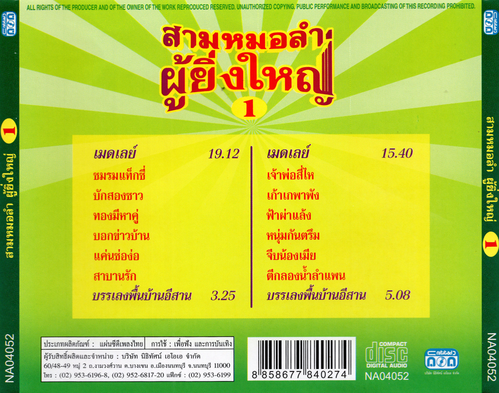 ![]() ![]() แผ่นซีดี เพลงไทย สามหมอลำ ผู้ยิ่งใหญ่ 1 🔴ประสาน เวียงสิมา